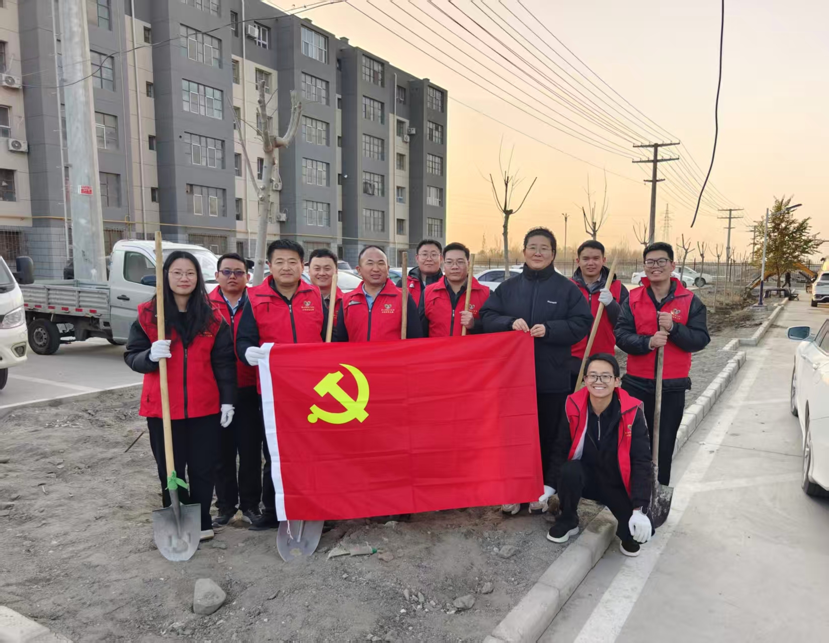 活动现场,党旗高高飘扬,党员干部们充分发扬水利人“吃苦耐劳、团结协作、攻坚克难”的优良作风,不顾泥土沾衣、汗水浸湿衣衫,严格按照植树规范,分工协作、默契配合,挥锹挖坑、扶苗培土、踩实浇水,每一道工序都做得认真细致,忙碌的身影在社区空地形成一道靓丽的风景线。经过党员干部们的齐心努力,20颗树苗屹立在绿化带中。