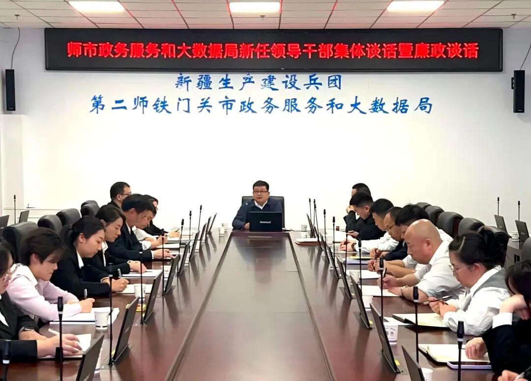 为切实加强师市政数人才队伍建设,提升新任干部的政治意识、担当意识和廉洁意识,纵深推进落实全面从严治党要求。1月9日,第二师铁门关市政务服务和大数据局召开新任领导干部集体谈话暨廉政谈话会议。局党组书记、局长陈剑锋主持会议并讲话。
