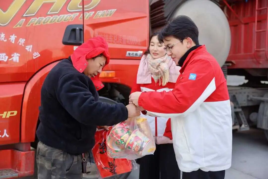 二十四团团委组织西部计划志愿者开展“暖冬行动”。志愿者们来到辖区国道沿线,为停车休息的大货车司机送上暖心关怀,与司机亲切交流,细致了解行车需求与实际困难,让志愿者们真切体会到一线运输从业者的奔波辛劳,深刻感悟坚守奉献的可贵。