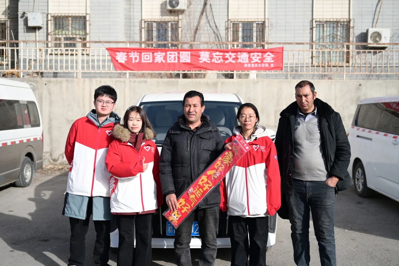 三十四团团委组织西部计划志愿者在大巴车停靠点开展“暖冬行动”。志愿者们为返乡旅客提供休息座椅、热水供应,主动搬运行李、搀扶老人、解答咨询,并送上福字与春联,送上新春祝福。同时,通过公众号宣传、发放服务卡片、反诈提醒、上门指引购票等线上线下方式,普及安全知识、提供便民服务。一抹志愿红温暖团圆路,充分展现了志愿者服务群众的责任担当。