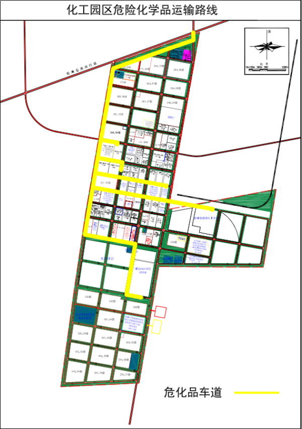 2.危化品运输车辆必须通过北门危化品车辆卡口预约通过并取卡进入园区。进入园区的危化品车辆须服从管理,按专用道路行驶。危化品车辆进入园区时间为09:00-23:00,园区内部道路全线禁停,限速40km/h,违章行为录入黑名单。