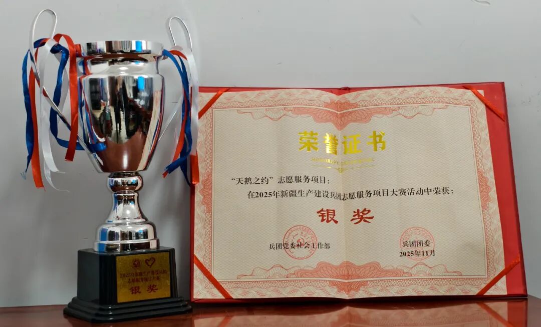 近日,从兵团志愿服务最高舞台上传来捷报!在2025年新疆生产建设兵团志愿服务项目大赛决赛中,由二十一团选送的 “天鹅之约”生态保护志愿服务项目,从全兵团433个优秀项目中脱颖而出,荣获大赛银奖!这是对二十一团志愿服务工作的高度肯定,也是“天鹅之约”品牌影响力不断提升的生动体现。