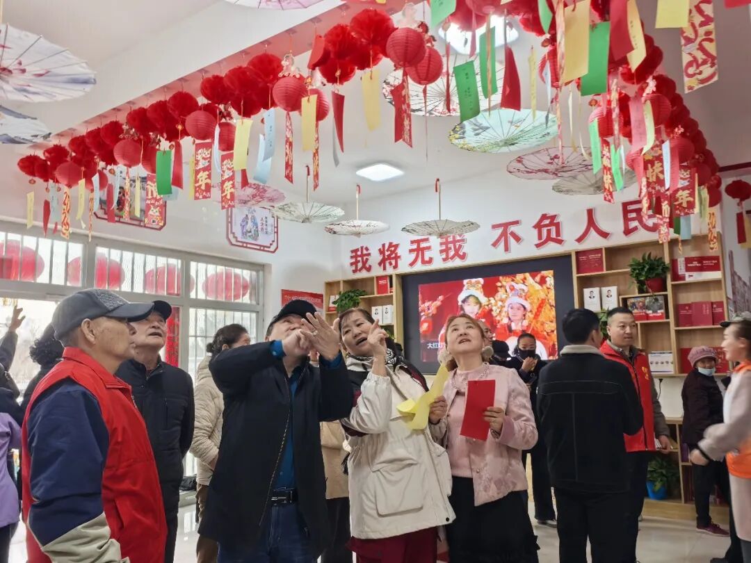 一条条写满灯谜的彩纸在头顶错落摇曳,宛如一道道绚丽的彩带。灯谜内容丰富多样,既有传统的诗词成语、民俗常识,也有贴近团场生活的政策知识、科普问答,更融入了民族团结的趣味题目,难易结合、老少皆宜。