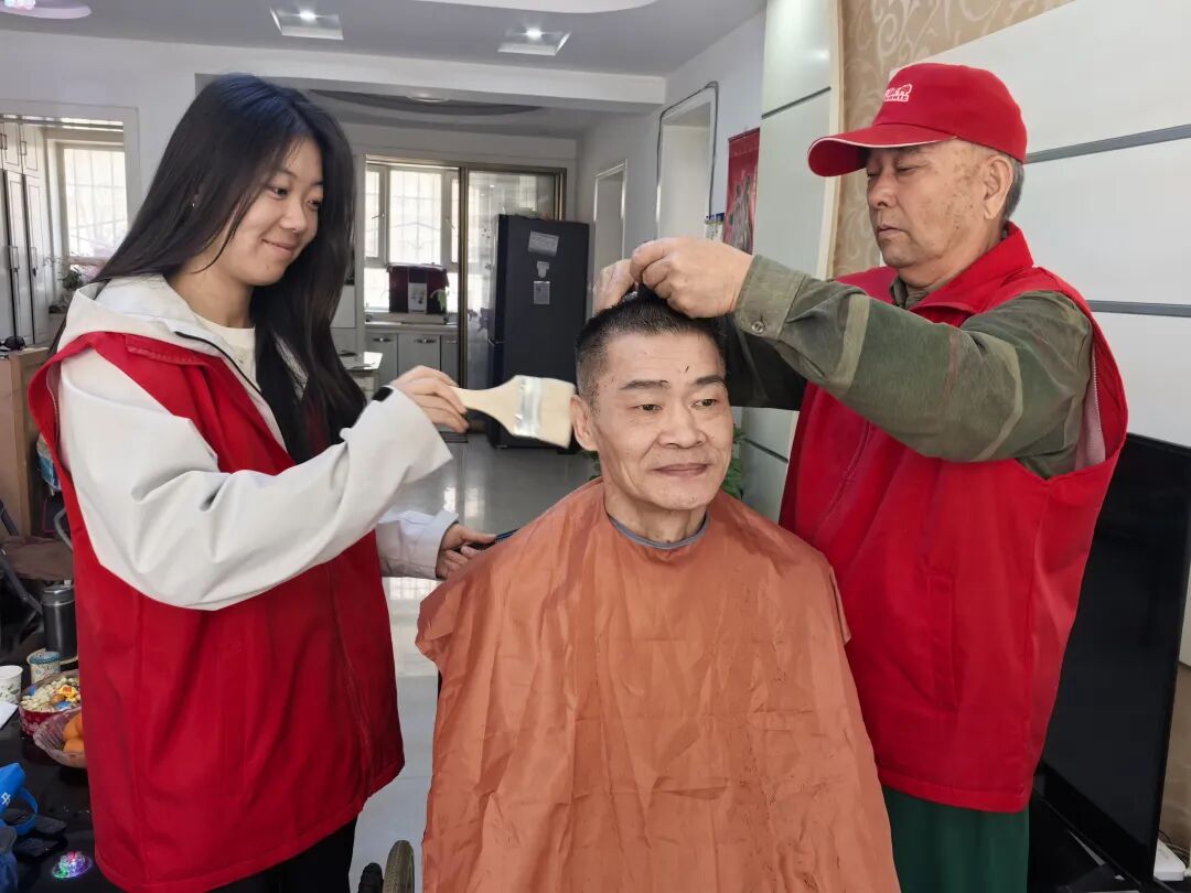 志愿者与理发师们走进社区、养老院和行动不便、独居老人家中,默契配合开展免费理发服务:娴熟地为老人们围好围布、做好细致消毒,耐心沟通发型喜好后便专心修剪,剪刀轻快起落间,丝丝白发纷纷落下,清爽利落的新发型让每位老人的精神面貌焕然一新,把细致周到的关爱送到长者心坎里。摸着清爽有型的新发型,朱爱笑意盈盈地竖起大拇指连连称赞:“不用跑理发店就能享受到这么专业的服务,剪得舒服又显精神,社区时时刻刻把我们老年人放在心上,真是太贴心了!”