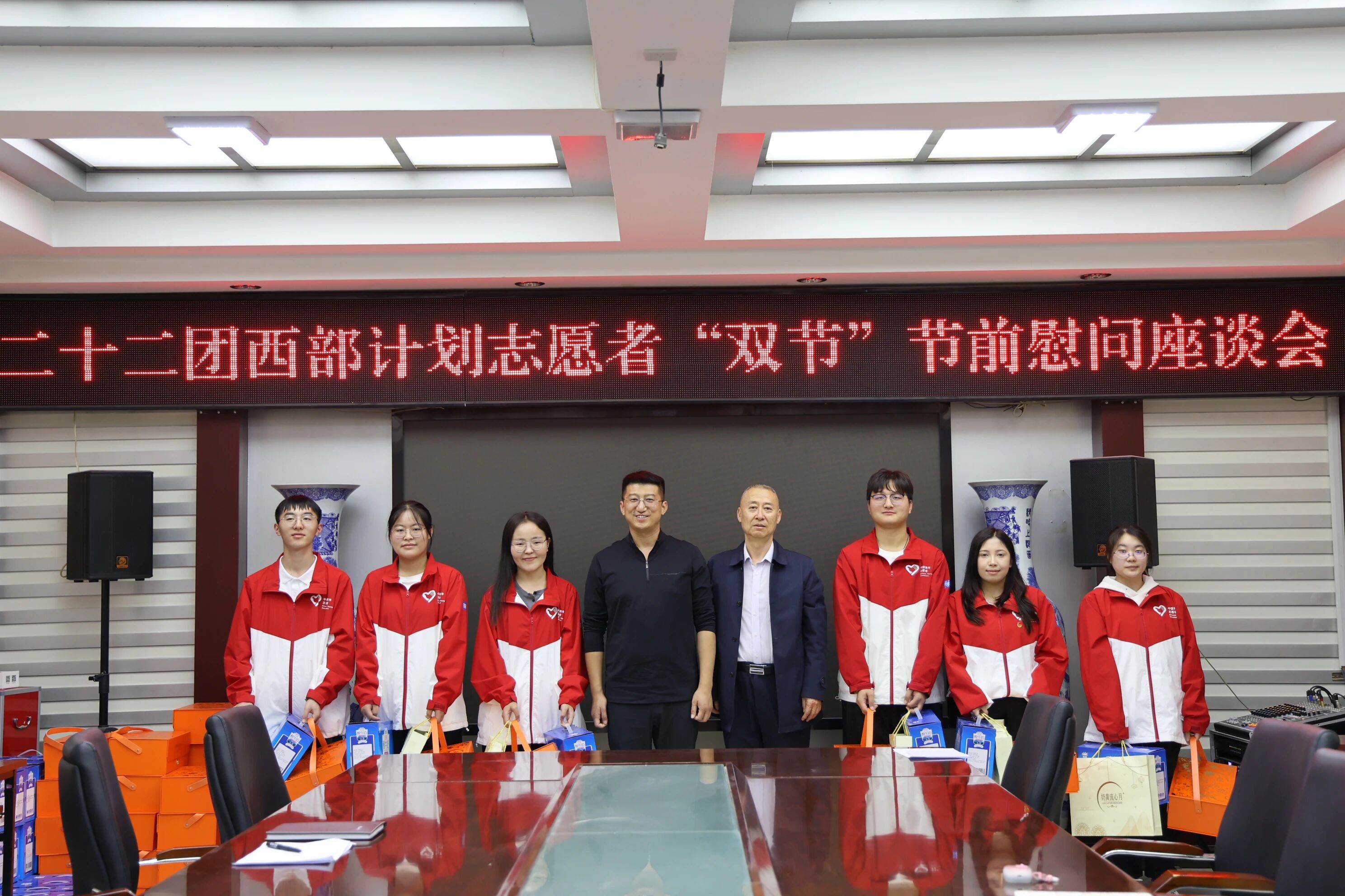 近日,在中华民族传统佳节中秋节和国庆节来临之际,二十二团团委组织西部计划志愿者开展“双节”节前慰问座谈会,为坚守岗位的36名西部计划志愿者送去节日的问候与诚挚的关怀。团党委书记、政委张鑫、团党委常委、纪委书记何小军出席活动。