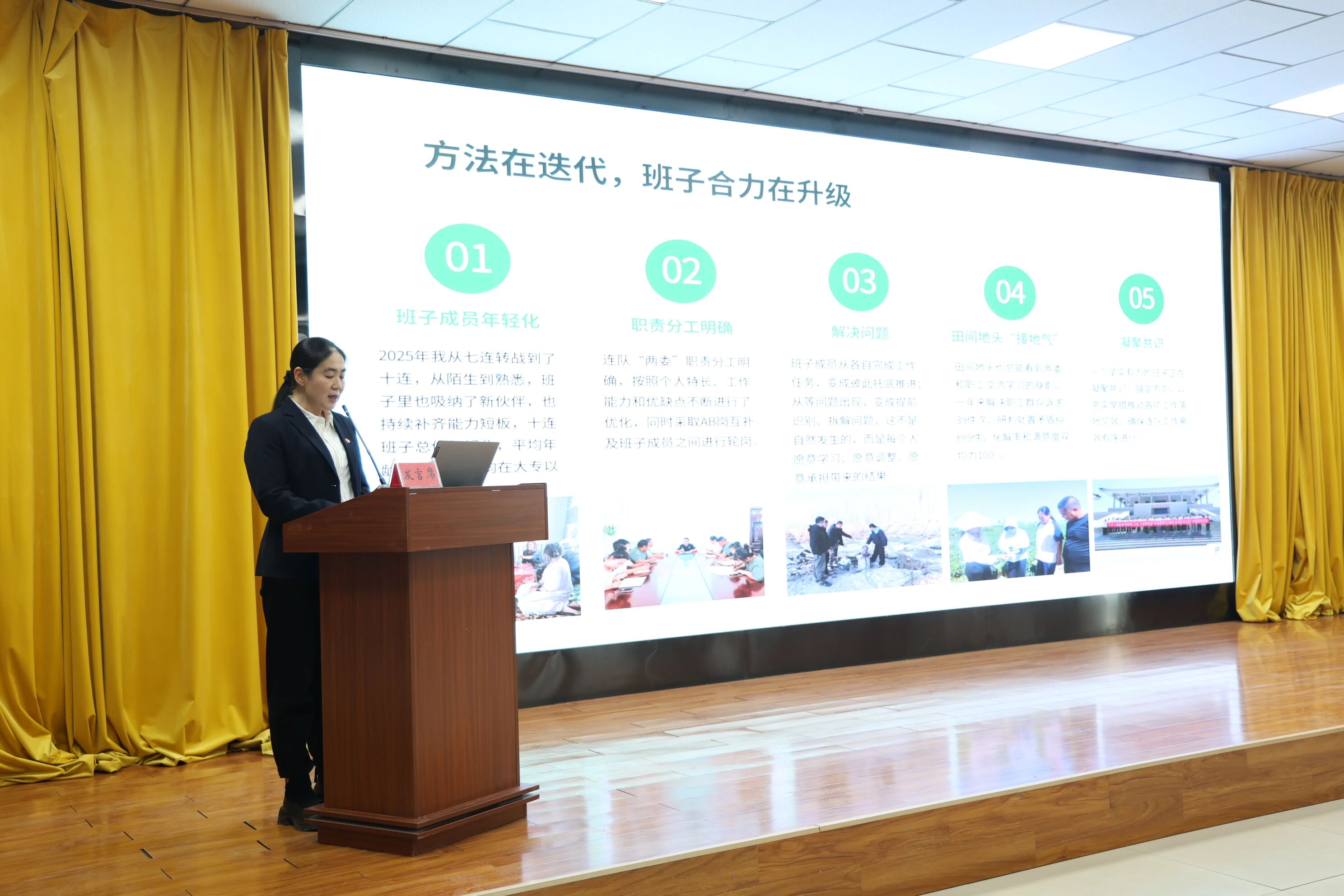 擂台上,各连队连长围绕粮食安全、特色产业培育、连队经济壮大、产业融合发展等核心任务,以数据说话,用成效答卷。七连万涛分享了在党建引领下,聚焦重点、盘活资源、推动产业多元发展的清晰路径;八连田晓玉阐述了“支部建在产业链上”的组织化发展模式;十四连陈晨介绍了党员带头探索“种养结合”与休闲农业的多元路径……从粮食高产攻关到“两红”产业升级,从盘活闲置资源到谋划精深加工,各连长的汇报生动展现了基层党组织在抓产业、谋发展中的战斗堡垒作用和“头雁”引领效应。