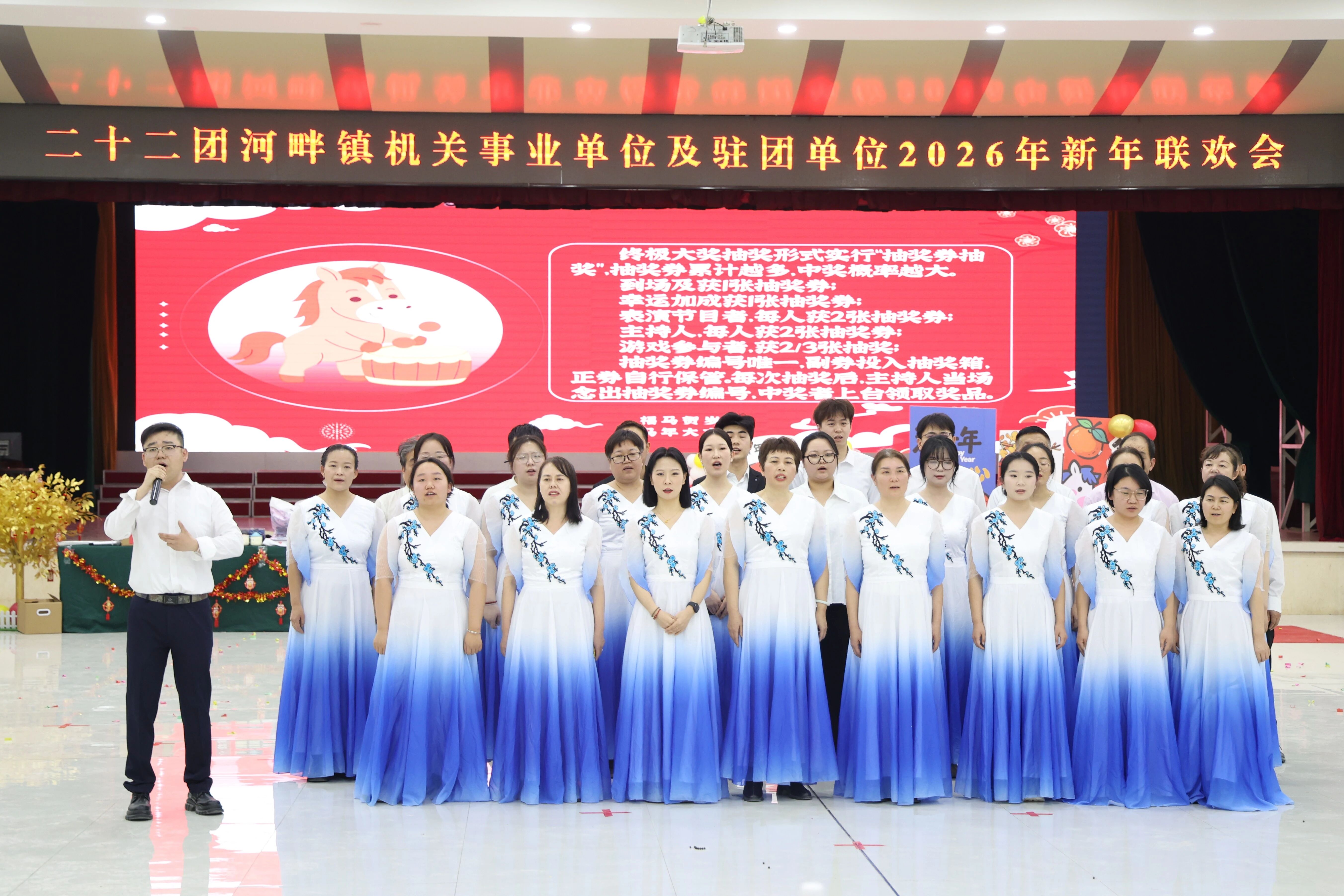 近日,二十二团“奔腾启新程·实干十五五”新年联欢会在文化中心热烈举行。团镇领导、机关事业单位全体工作人员、驻团单位代表及西部计划志愿者、“三支一扶”大学生、退役军人锻炼岗、公益性岗位人员等欢聚一堂,共迎新春佳节。