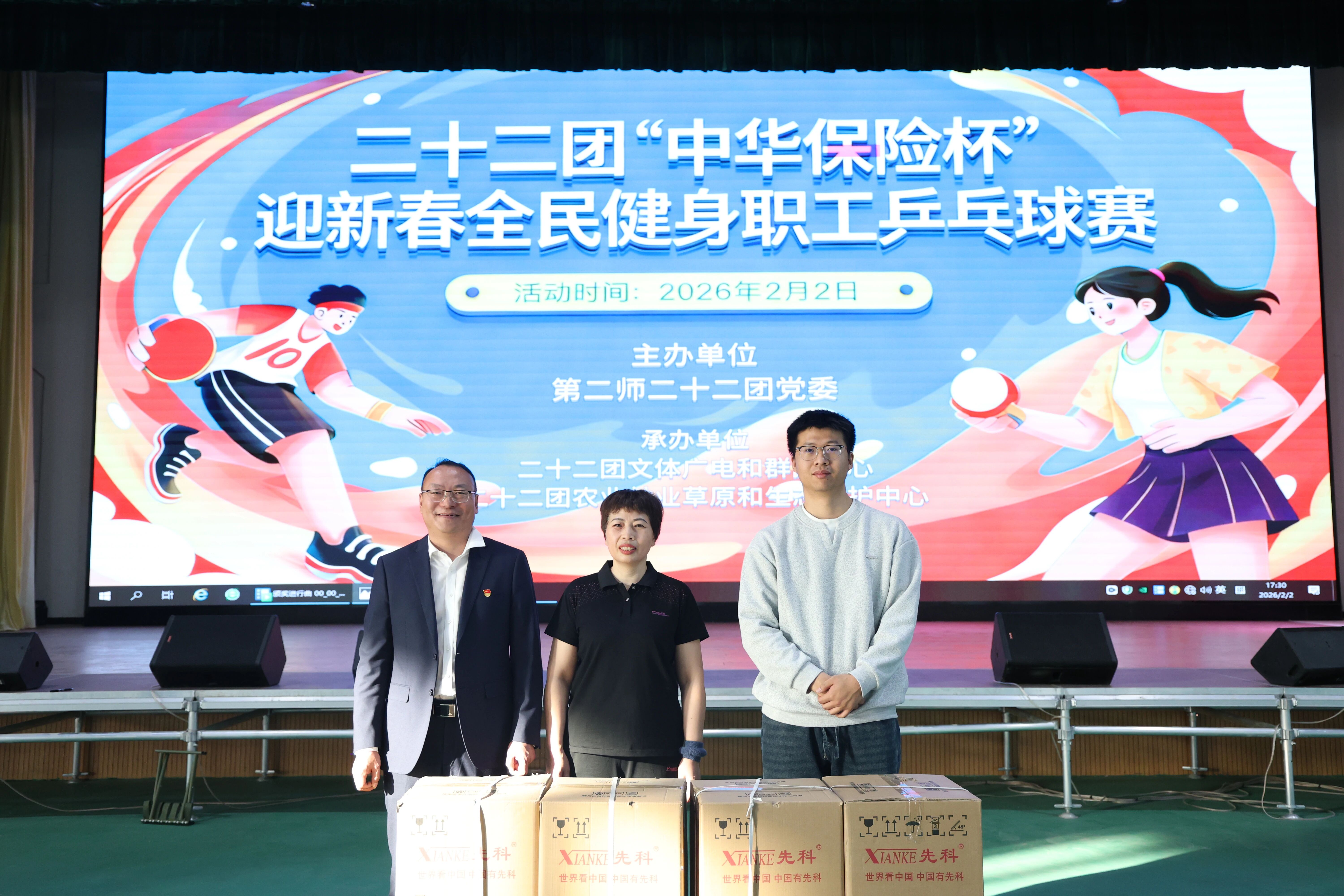 为积极响应全民健身国家战略及健康中国和体育强国建设的号召,丰富团场职工文化体育生活,营造喜庆祥和、团结奋进的节日氛围,近日,2026年“中华保险杯”迎新春全民健身职工乒乓球赛在二十二团中学体育馆成功举办。团党委常委、副政委、总工会主席张伟出席活动。