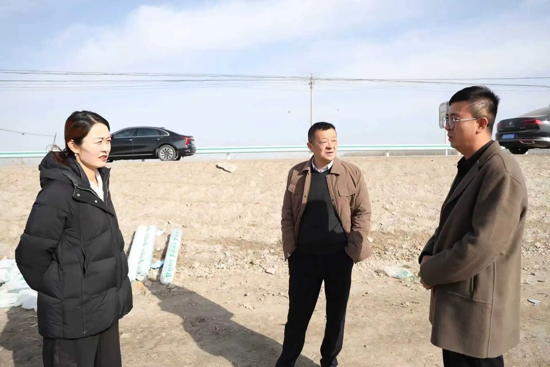 随后,吴燕来到4连和2连的春耕地块。广袤的田野上,大型农机设备轰鸣作响,正在紧张有序地进行铺膜、播种作业。吴燕详细了解了今年的种植计划、土壤墒情以及农机调度情况。