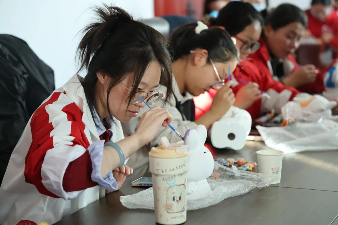 活动现场,素白的石膏娃娃、缤纷的颜料和精细的绘画工具早已准备就绪,青年们放下忙碌的工作,全身心投入到这场色彩与创意的邂逅之中。他们或低头凝思构图,或与邻座轻声交流灵感,手中的画笔蘸取色彩,细致地为石膏娃娃描绘上独特的图案与表情。从憨态可掬的卡通形象到典雅别致的艺术创作,原本单一的石膏坯体在青年们的巧手下逐渐焕发出鲜活的生命力,每一件作品都凝聚着作者的巧思与情感。
