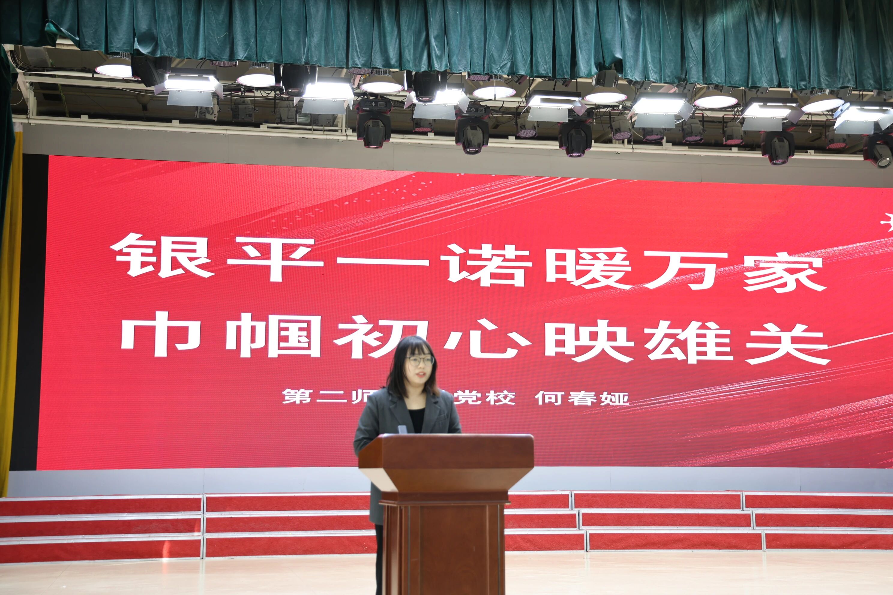 随后,两位宣讲员进行了感人至深的宣讲。二师党校教师龙许玉以“巾帼绽芳华 振兴勇争先”为题,生动讲述了二师乡村振兴典范樊晓英的奋斗故事,展现了基层女性在乡村振兴一线拼搏奉献的精神风貌。二师党校教师何春娅则以“银平一诺暖万家,巾帼初心映雄关”为题,深情讲述了杜银平守信践诺、服务群众的感人事迹,激励大家不忘初心、砥砺前行。