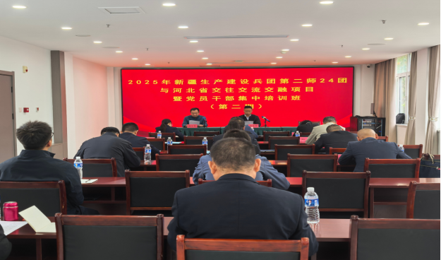 10月11日,2025年新疆生产建设兵团第二师二十四团与河北省交流交融项目及党员干部集中培训班(第二期)在唐山市正式开班。来自二十四团机关、事业单位、连队社区的17名党员干部参加培训,二十四团党委副书记、副政委、总工会主席杨亚军主持会议并讲话。