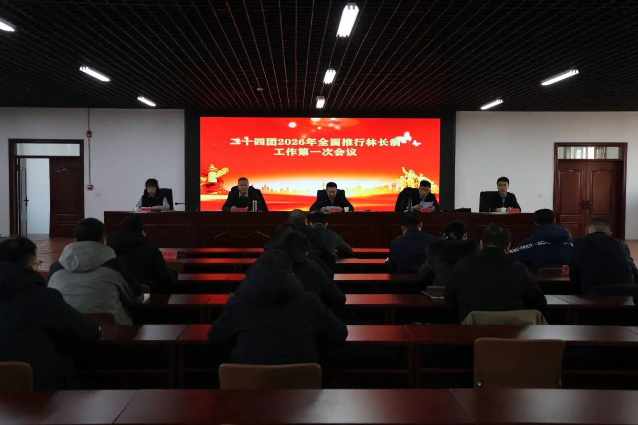1月16日,二十四团高桥镇召开2026年全面推行林长制工作会议,团党委副书记、团长晁辉主持会议并讲话。在家团领导杨亚军、赵龙、崔光宇、侯瑞聪,各部门、中心负责人,农林草中心负责林草工作相关人员,各连队连级林长、副林长参加会议。