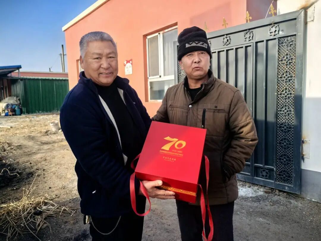 近日,二十四团五连党支部将一份份承载着党中央亲切关怀的珍贵礼物——中央代表团为庆祝新疆维吾尔自治区成立70周年赠送的纪念茶壶,送到了连队困难职工群众家中,将这份饱含深情的祝福与温暖传递到基层一线。