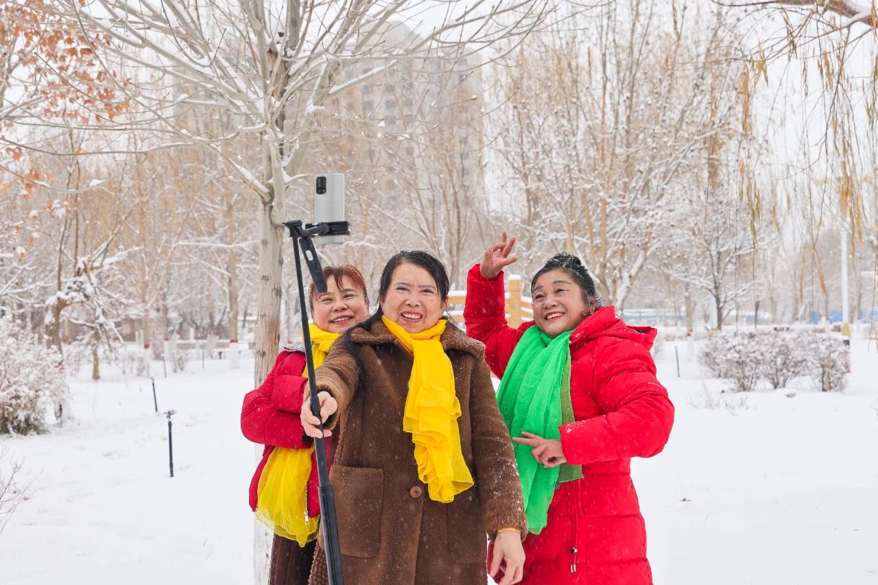 雪花纷纷扬扬,漫天飞舞。一夜过后,整个城镇银装素裹,进入了玲珑剔透的银色世界。12月10日,二十七团天湖镇迎来今冬第一场降雪,鹅毛般的雪花静悄悄地洒落大地,放眼望去一片洁白,美不胜收。瑞雪兆丰年,今冬的第一场雪就这样悄无声息的来到了这座特色塞外江南小镇……团镇的职工群众纷纷走出家门,欣赏着美丽的雪景,感受着冬日雪景的独特魅力。二十七团天河社区居民付光芬说:“今年,这个雪下的很大,风景也好,太美了,我们都出来赏雪来了,瑞雪兆丰年,祝团场职工群众来年有个好的收成。”