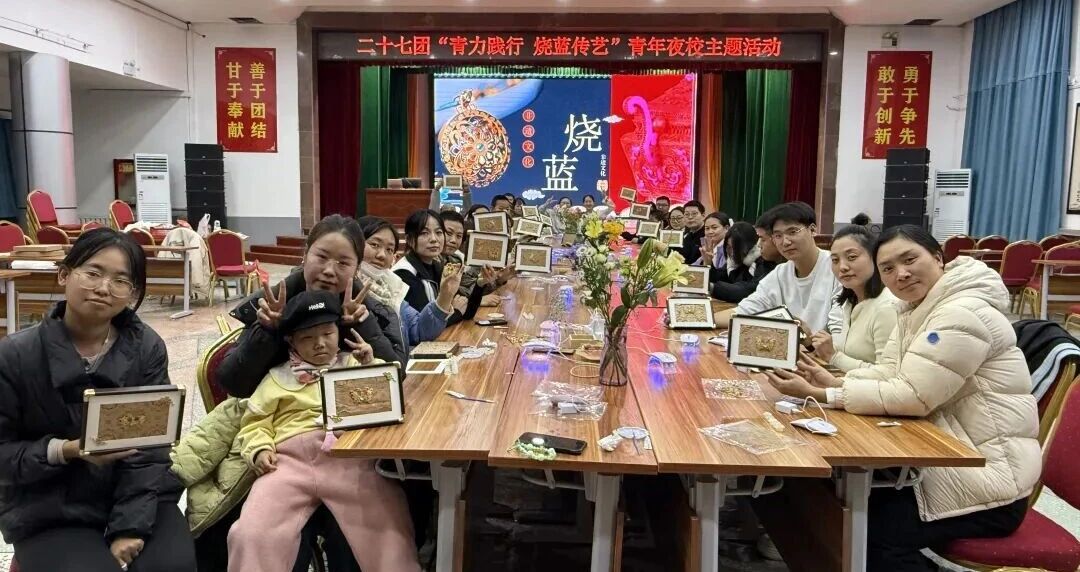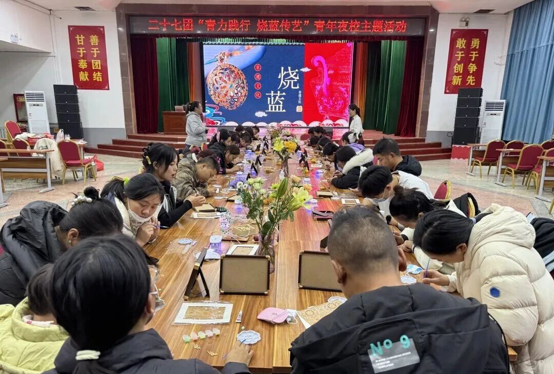 11 月 13 日晚,二十七团天湖职工文化中心灯火通明,来自团场30 名文艺爱好者齐聚一堂,在非遗老师的指导下体验烧蓝技艺,这场由二十七团团委、文联、新时代文明实践所精心组织的“青力践行 烧蓝传艺”青年夜校活动,为冬日的团场增添了浓厚的文化暖意。