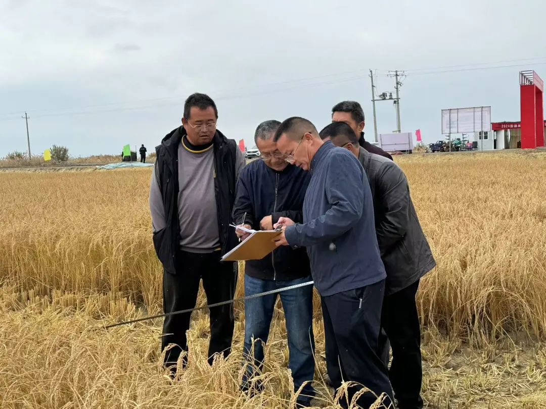 如何向“白花花”的盐碱地要粮食、要效益,二师铁门关市种植海水稻的实践给出了答案。近日,二师铁门关市农业农村局组织新疆农垦科学院、兵团农业技术推广总站、二师农业科学研究所等单位行业专家组成专家组,对二二三团海水稻改良示范田进行现场考察、测量地块后实收测产,经过收割脱粒、过磅称重、去杂等程序,根据国家标准14.5%水分含量折算,得出海水稻改良示范田平均亩产505.1公斤,二师首次在重度盐碱地上实现海水稻亩产突破1000斤。
