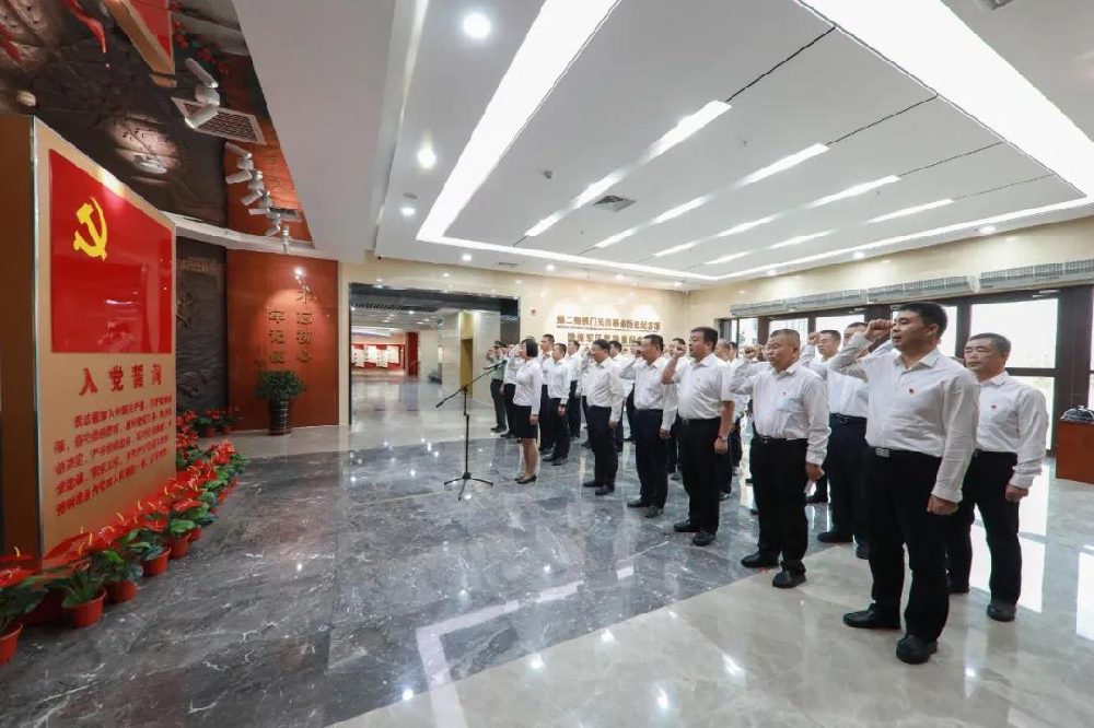 参观结束后,吴彬带领师市领导同志面对鲜艳的党旗,庄重举起右拳,重温入党誓词,铿锵有力的宣誓声响彻大厅。