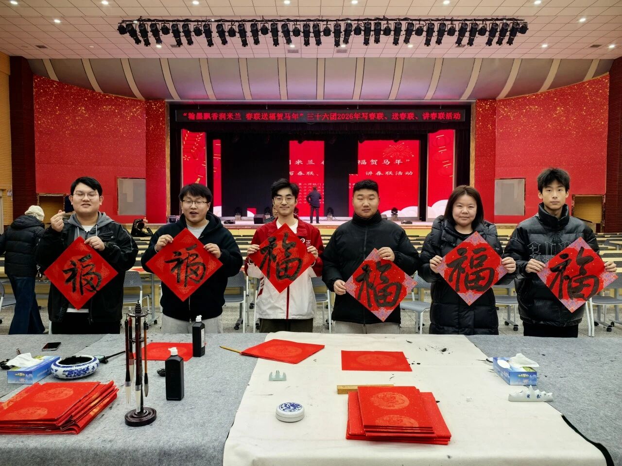 我有幸成为三十六团2026年“写春联、送春联、讲春联”活动中的一员。在活动现场,我穿梭于案几之间,协助书法老师们铺展红纸、研磨香墨。当老师们笔走龙蛇,一个个苍劲有力的“福”字、一幅幅寓意美好的联句跃然纸上时,我接过这份热气腾腾的祝福,将它们递到等候的职工群众手中。空气中弥漫的墨香,与人们的欢声笑语交织在一起。当我看到叔叔阿姨们手捧春联,仔细端详时眼中绽放的光彩,我触摸到了年俗的温度,也第一次如此真切地感受到,所谓“传承”,就在这“送”与“接”的寻常瞬间里完成。