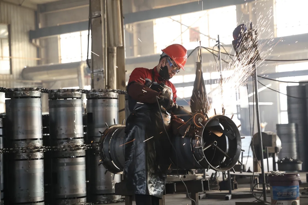 工人正在进行焊接作业。张效红 摄