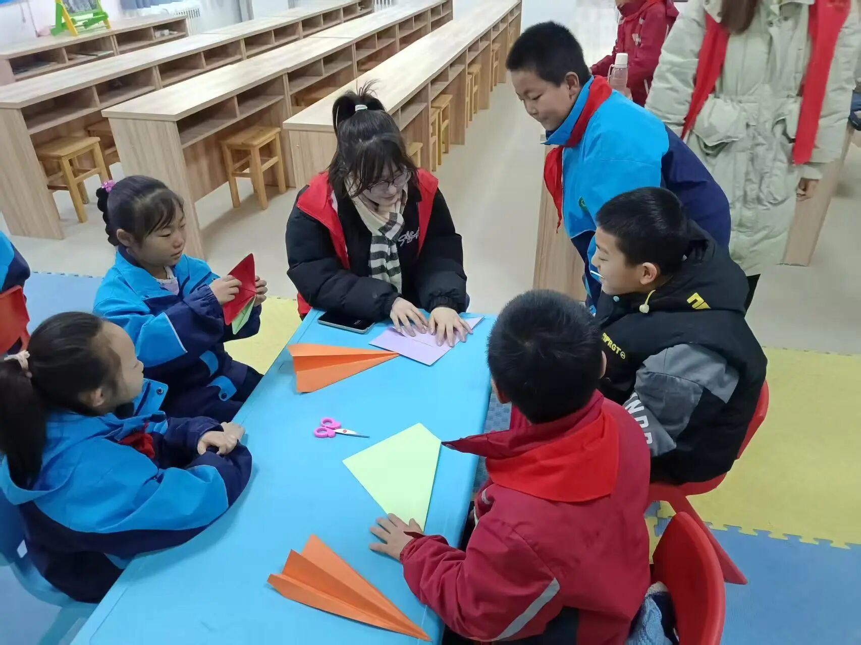 在社区的安排下,我成为了孩子们寒假生活的“大伙伴”。在乒乓球与羽毛球赛场上,我不再是观众,而是秩序的维护者、安全的守护者和快乐的见证者,看着小运动员们挥洒汗水、绽放笑容,我仿佛也回到了那个充满活力的年纪。而在手工课堂里,我俯下身,手把手带领孩子们感受指尖的艺术。当普通的彩纸在他们手中变成灵动的剪纸或精巧的折纸作品时,我看到的不仅是传统文化的悄然传承,更是一颗颗创造力种子的萌芽。陪伴与引导,让我明白了教育的另一种形式——在玩中学,在爱中长。