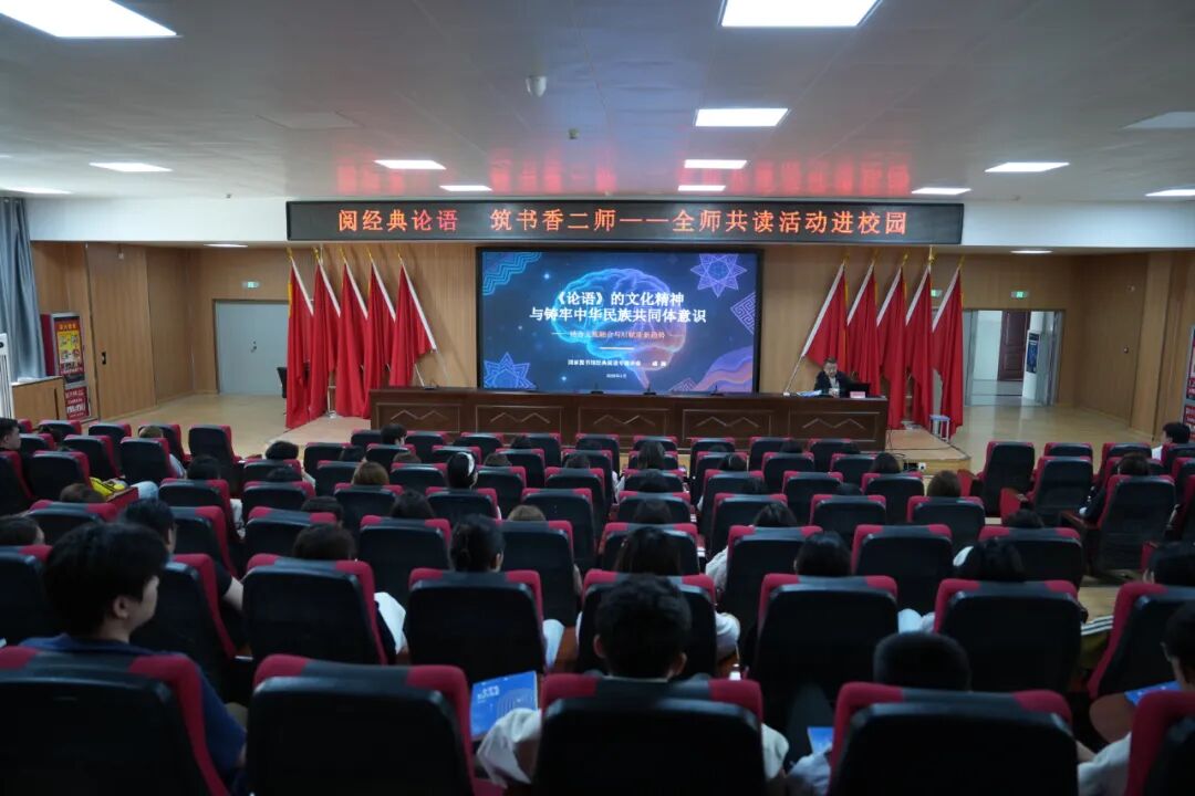 为深入推进全民阅读,以党建引领中华优秀传统文化传承,铸牢中华民族共同体意识,4月24日上午,铁门关市图书馆全民阅读周系列活动之“阅经典论语 筑书香二师”全师共读进校园主题活动,在党建引领文化育人的鲜明导向下走进铁门关职业技术学院,为青年学子打造了一场兼具文化深度与时代温度的经典共读课堂,以经典为媒、以党建为魂,凝聚青春力量,厚植家国情怀。