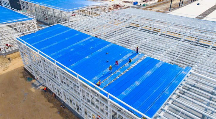 “现在主要是钢构厂房和仓库的墙面板安装、收尾,主体进入吊顶和地面铺装收尾阶段,下一步即将进行室外管网施工。”新疆芊皓建设工程有限公司项目经理雷远明说。